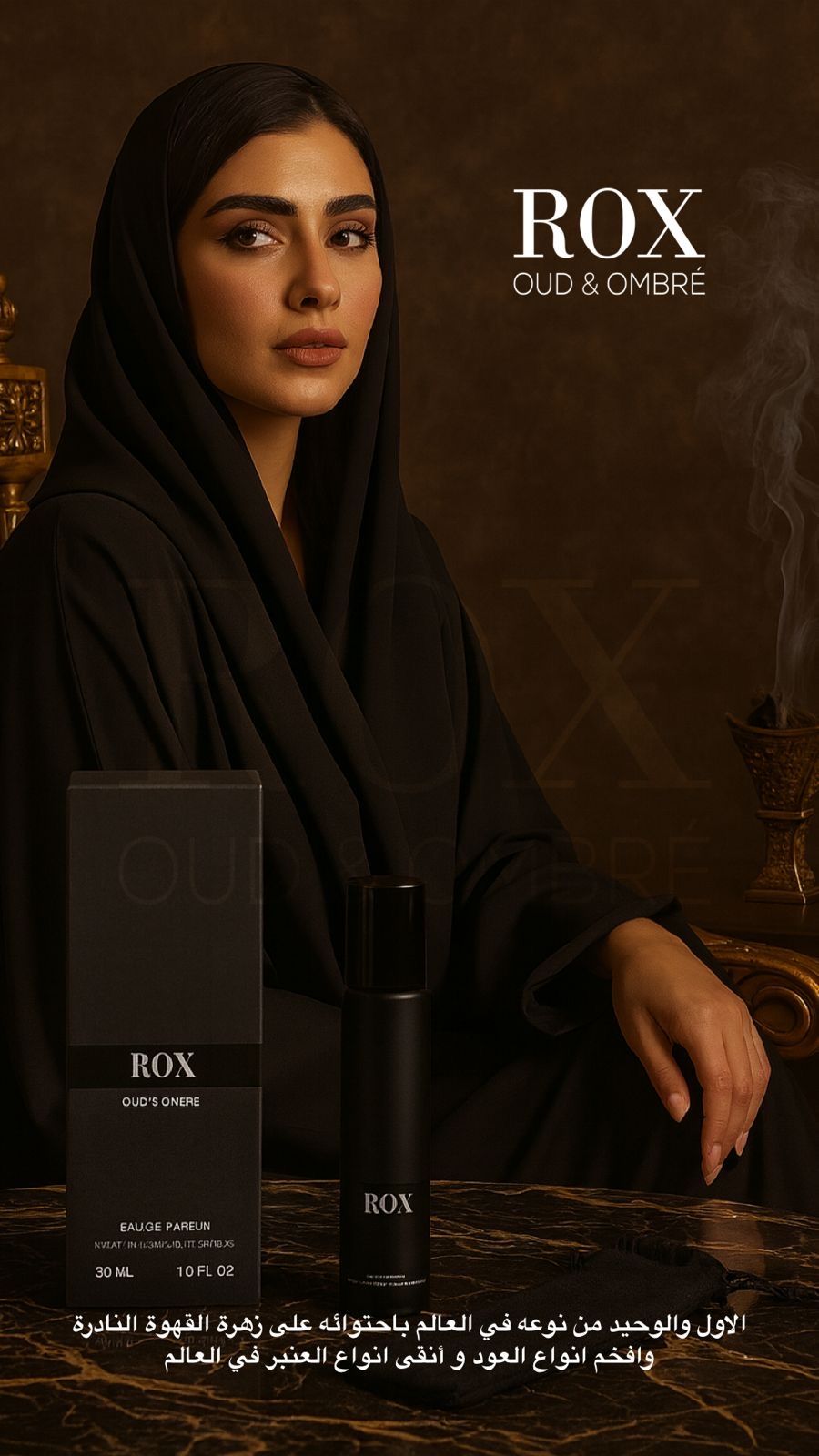 ROX Oud & Ombré مزيج فاخر من الورد، زهور القهوة، والعود العميق. عطر أنيق بثبات يدوم وحضور يترك بصمة لا تنسى مكونات طبيعيه ونقية 100% موجود توصيل داخل الدولة وخارجها
