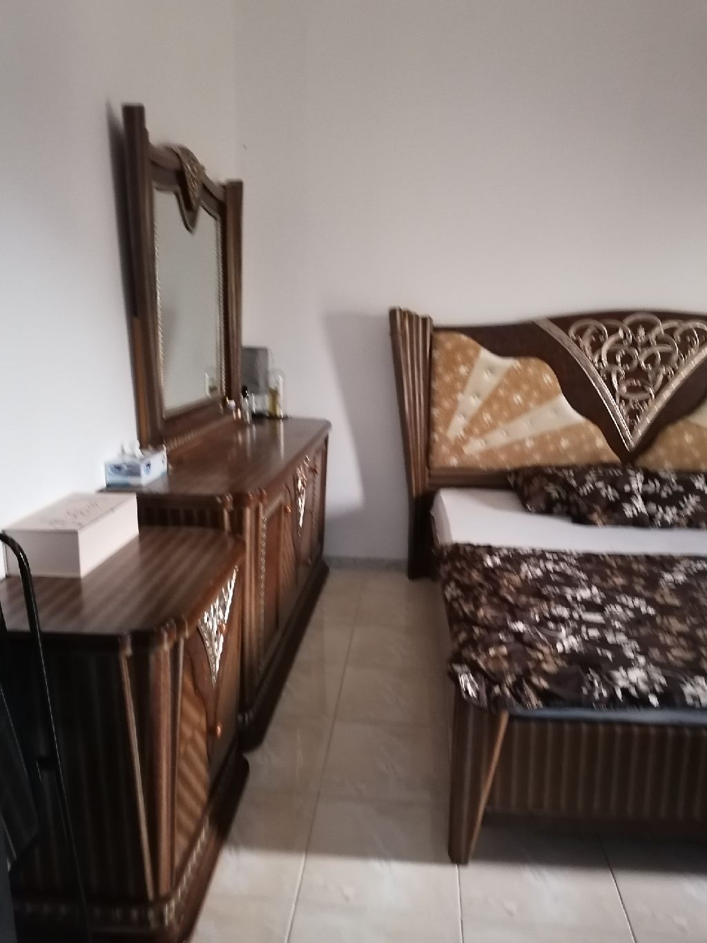 للبيع غرفة نوم ممتازة خشب محلي مع فرشة طبية 2 كوميدين وتسريحة كبيرة استعمال نظيف جدا مطلوب 400 درهم. العين المويجعي راسلني