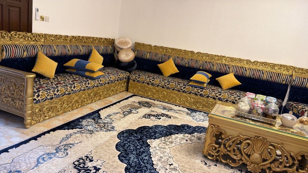 للبيع كنب مصري خشب زان عدد 3 استخدام خفيف تكلفته 5000 سعر البيع 700 درهم المكان نعمة للتواصل