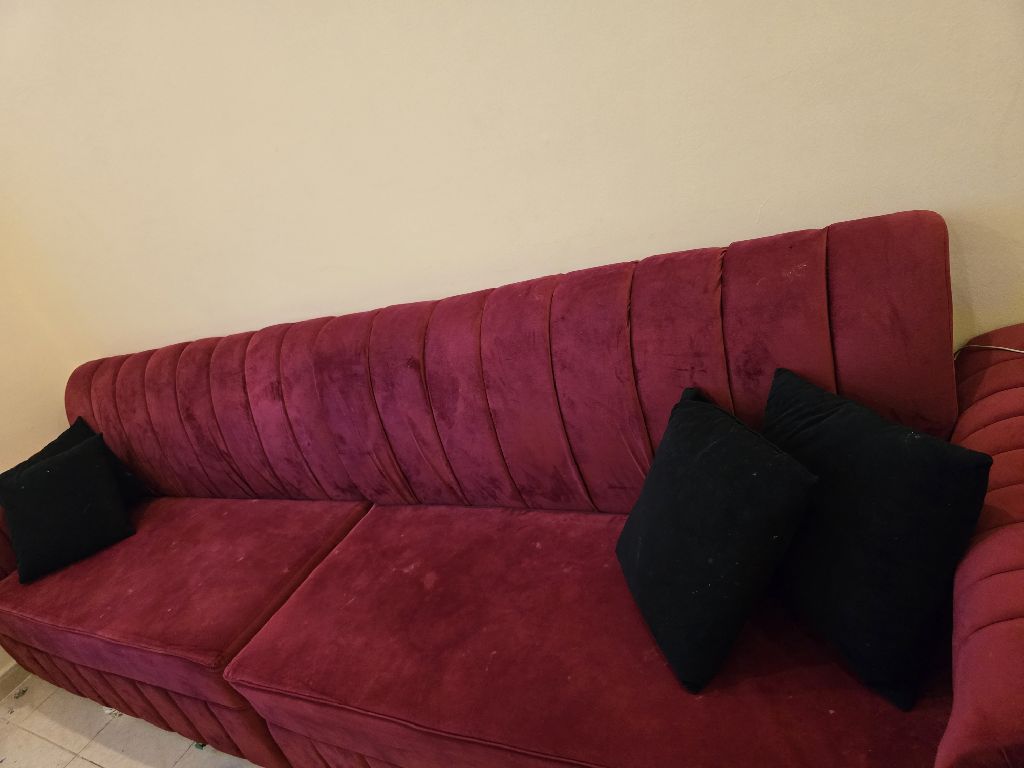 طقم كنب خمس قطع خزانه ملابس عائلية الأغراض نظيفة جدا البيع لدواعي السفر المكان العين اليحر العامرة