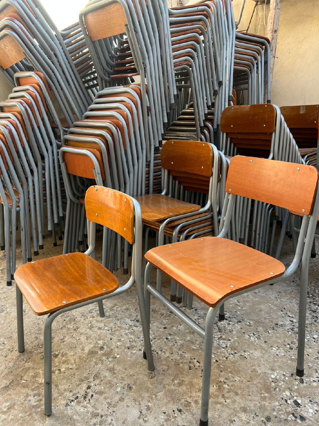 For sale 400 sturdy wooden chairs with very strong iron bases, suitable for any purpose. Available in large and small sizes, suitable for children and adults. Wholesale or individual sale. Price per chair 10 dirhams