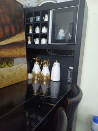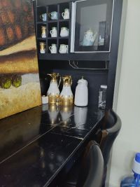 دولاب أواني مع كراسي خشب أصلي من هوم سنتر، السعر المطلوب 300 درهم