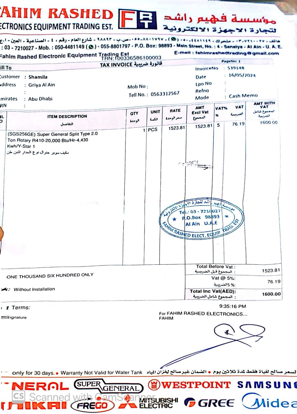 2 ton super gernal AC with 3.5 years warranty remaining with fixing only in Al Ain