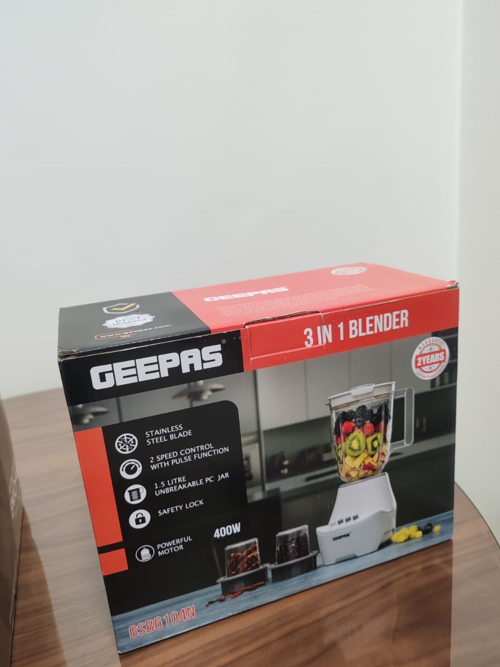 خلاط GEEPAS مستعمل في حالة جيدة 3*1 غير قابل للكسر 1.5 لتر سر عتان شفرة ستانلس ستيل + 2 مرطبات ps صغير 400 W تيار متردد 220 - 240 فولت السعر 60 درهم قابل للتفاوض