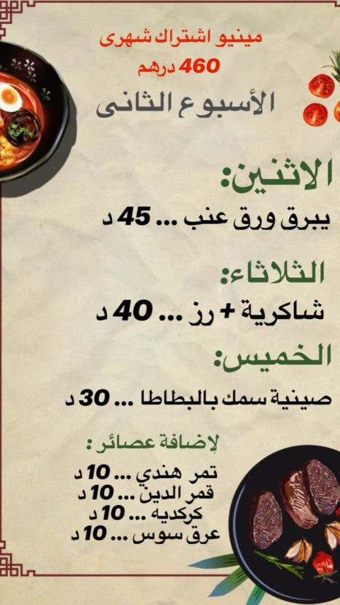 متوفر طبخ منزلي نظيف وشهي جدا في مدينة العين بأيدي سورية، ويوجد خصم كبير للطلب الأول وسوف تطلب مرات عديدة بعد تذوق الطعم، متوفر (يبرق لحم، يالنجي خضار، كبسة، مندي، رز بازيلا، بخاري، برياني، شاورما، فاهيتا، صواني جاج) وجميع الاكلات على الطلب، يوجد اشتراك شهري ويومي