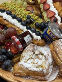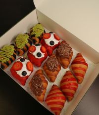 يشرفنا بمناسبة الافتتاح أن نقدم خصم 20 على جميع الأصناف كما لدينا استعداد تام للمناسبات والحفلات وللمطاعم والمقاهي والشركات والدوائر الحكومية. من مخبوزات يوميا تخبز طازجة. مثل الكرواسونوا لذي يمتاز في مزيد من الحشوات التي تناسب ذوقك كما يمكننا توفير سلة بها تشكيلة من الكرواسون بأكثر من حشوه فقط أخبرنا ما هي الحشوه المفضلة كما يمكنك طلب فطور من الكرواسون بعدة حشوات