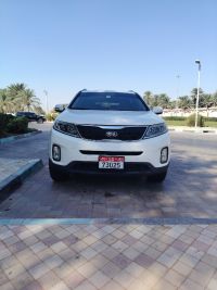 Kia Sorento GCC 2013, 7-seater family car, 4-cylinder, eco system, accident-free, one-year ownership, 207,000 real kilometers, white exterior with beige velvet interior, screen with rear camera, parking sensors, steering wheel controls, cruise control, front tires from July 2025, all preventive maintenance completed including engine oil and filter and gearbox oil, excellent air conditioning, car with no issues, registered and used, asking price 24,500 dirhams.