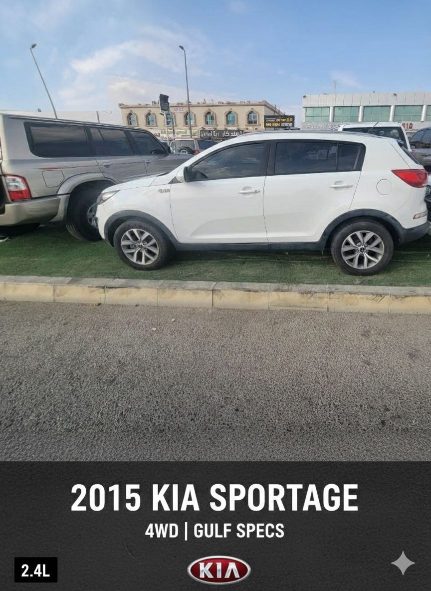 Kia Sportage 2015, 4WD, 2.4L engine, GCC specifications, agency paint, Bluetooth screen, velvet interior, cruise control, aluminum rims, fog lights, side mirror signals, very cold AC, ABS airbags.
