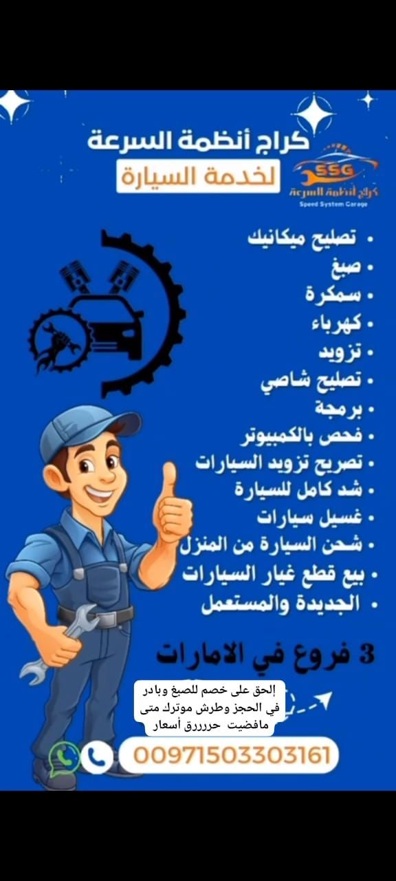 مطلوب موظف سمكري في كراج لسمكرة وتصليح السيارات المصدومة ذو خبرة وكفاءة بشكل مستعجل ويكون جاهز للبدأ في العمل وأنا أتكفل باقامته للتواصل على باقي التفاصيل يرجى التواصل واتساب موقع الورشة في مدينة العين - القوع وبإدارة اماراتية