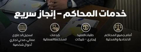 متاح جميع الخدمات القانونية بأنواعها وخدمات قيد جميع الدعاوي بأنواعها وخدمات المحاكم الأسرية والتجارية والمدنيه والخدمات العدلية من خلال كاتب العدل خدمات التوثيقات اقرار الاحالة والا عآلة خدمات وزارة الداخلية الشرطة والنيابة العامة وكتابة جميع المذكرات القانونية بأسعار منخفضة