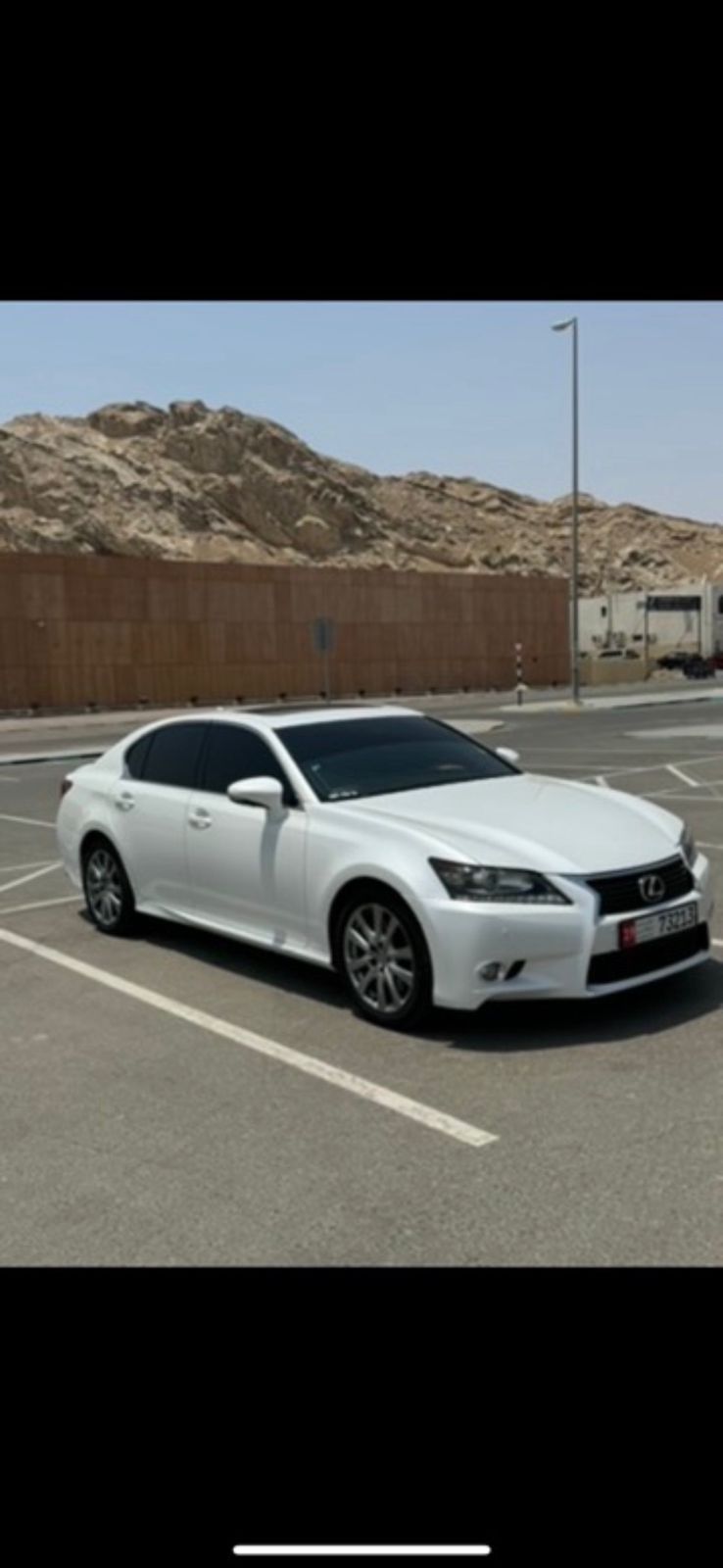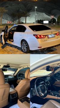 Lexus 350 GS Platinum, white exterior with saffron interior, imported from America, model year 2013, mileage 165,000 km. The car is clean and fully serviced, ready for transfer. Asking price: 43,000 AED. Located in Al Ain.