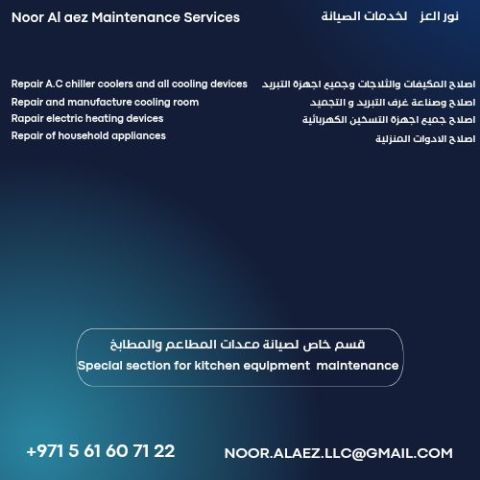 Restaurant Kitchen Equipment Maintenance AC - Refrigerators - Electricity - Stoves - Chiller Rooms - and all kitchen maintenance Drywall installation - Glass door install & maintenance - Aluminum installation