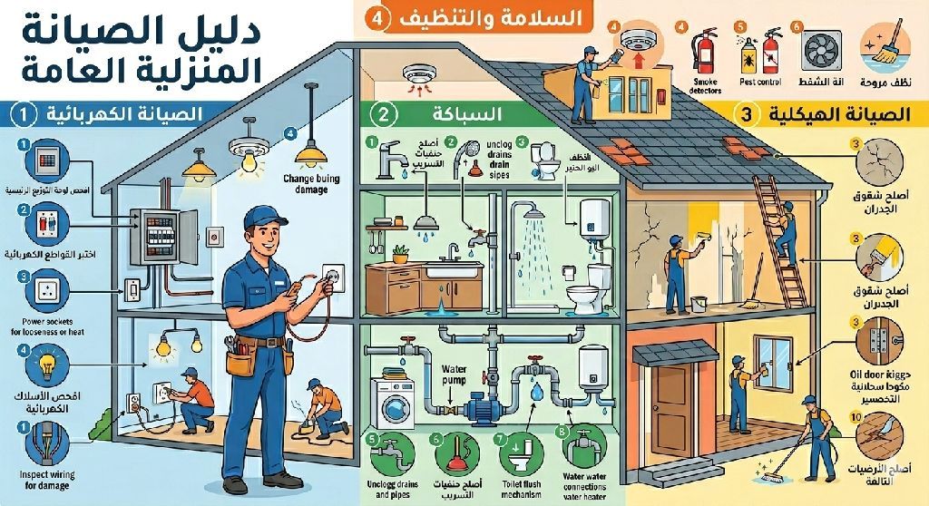 Comprehensive Home General Maintenance Guide Maintaining your home is the best way to ensure your family's safety and comfort. This guide highlights the four essential pillars of home maintenance Electrical Maintenance Checking wiring, DB boards, testing MCBs, and replacing faulty light fixtures to prevent hazards. Plumbing Services Fixing leaking faucets, unclogging drain