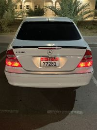 Mercedes E500 model 2003, Japanese import, clean ownership for 10 months. Engine, transmission, and chassis in excellent condition. Full specifications include sunroof, cruise control, black leather electric seats. Located in Al Ain, Al Bateen area. Contact number available on the ad for serious buyers only.