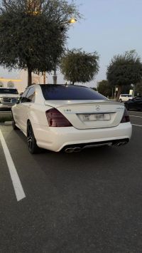 For sale: Gulf-spec Mercedes S500 L, model year 2008, converted to S63 exterior (model 2013), full option, 200,000 km, panoramic roof, seat cooling and heating for front and rear seats, hydraulic suspension, night vision, electric side and rear sunshades, soft-close doors, electric exhaust, ownership transfer and full year insurance. Located in Al Ain. Contact for communication.