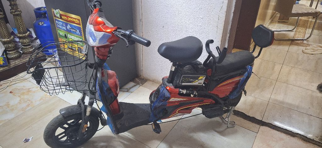Windhorse electric bike in good condition, used for only 4 months. Suitable for daily commuting. Features Top speed 64 km/ h Front basket Front and rear lights Comfortable Seat with back support Rechargeable battery with its charger, a key and a spare key Note The rear tire is flat and only needs air. Price AED550 Location Al Ain - Um Ghafah