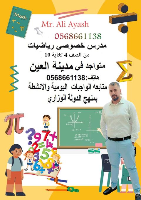 معلم خصوصي للمنهج الوزاري رياضيات للمراحل من الأول لغاية العاشر. للحجز الاتصال على (واتساب العين)