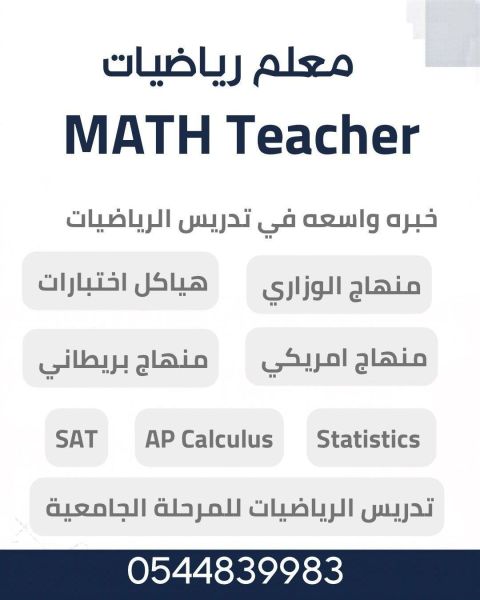 معلم رياضيات SAT - AP Calculus - Statistics تدريس الرياضيات للمرحلة الثانوية عام ومتقدم - تدريس الرياضيات للمرحلة الجامعية - تدريس الرياضيات المناهج الأمريكية والبريطانية - للتواصل