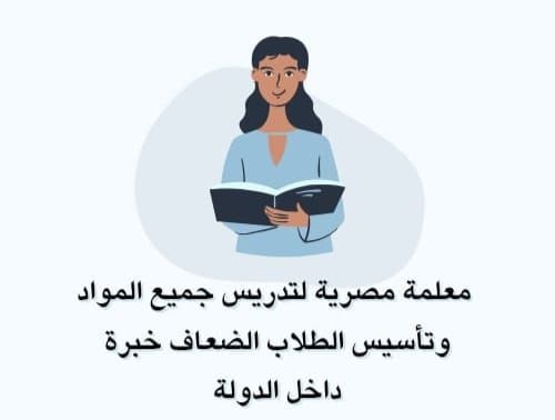 معلمة مصرية خبرة داخل الدولة لتدريس جميع المواد، وتأسيس الطلاب وتقوية الضعاف وتعليم القراءة والكتابة ومتابعة الواجبات على المنصات، التدريس بأسلوب سهل ومبسط، خبرة بجميع مناهج الدولة للتدريس داخل العين