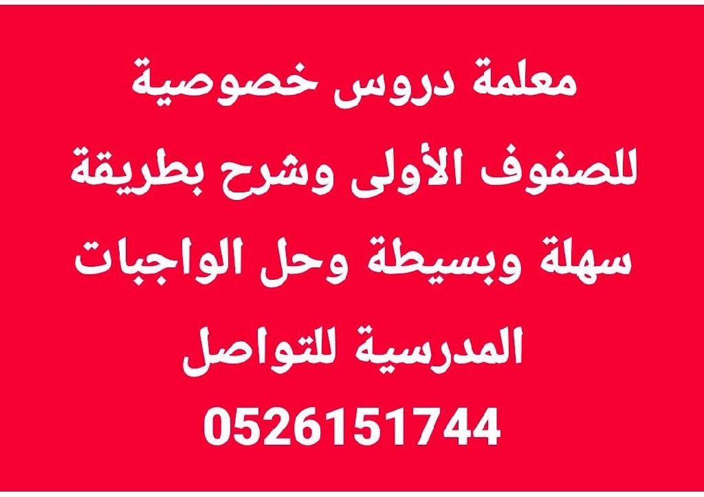 معلمة دروس خصوصية لجميع المواد الدراسية للصفوف الأولى وشرح بطريقة سهلة وبسيطة وحل الواجبات المدرسية للتواصل