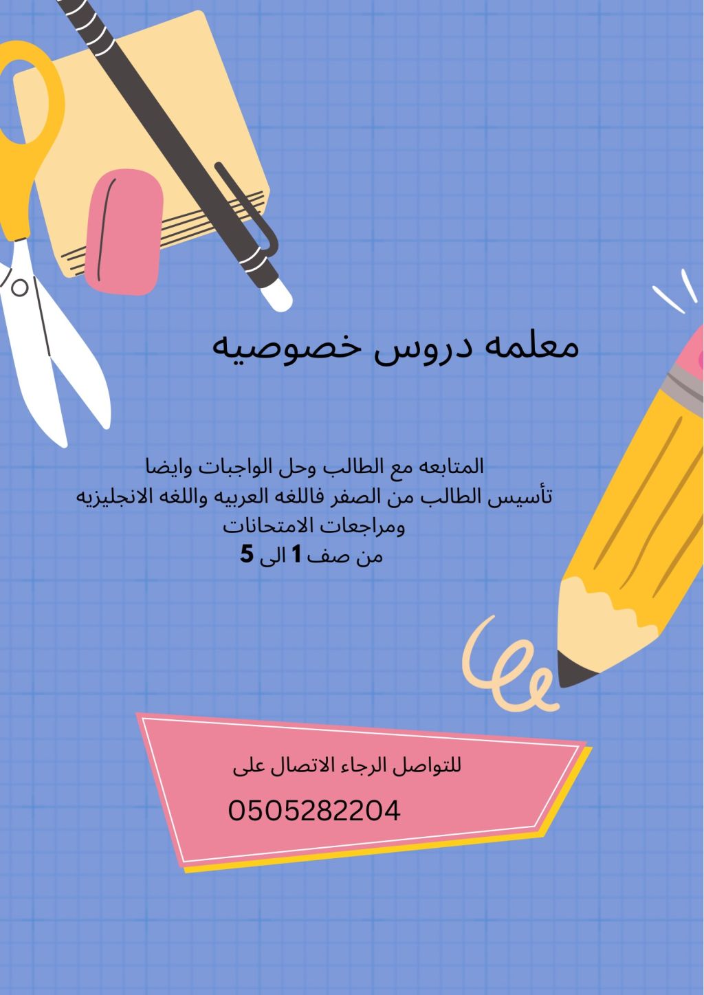 معلمه دروس خصوصيه في مدينة العين للتأسيس وحل الوأحبات ومساعدة الامتحانات والمشاريع