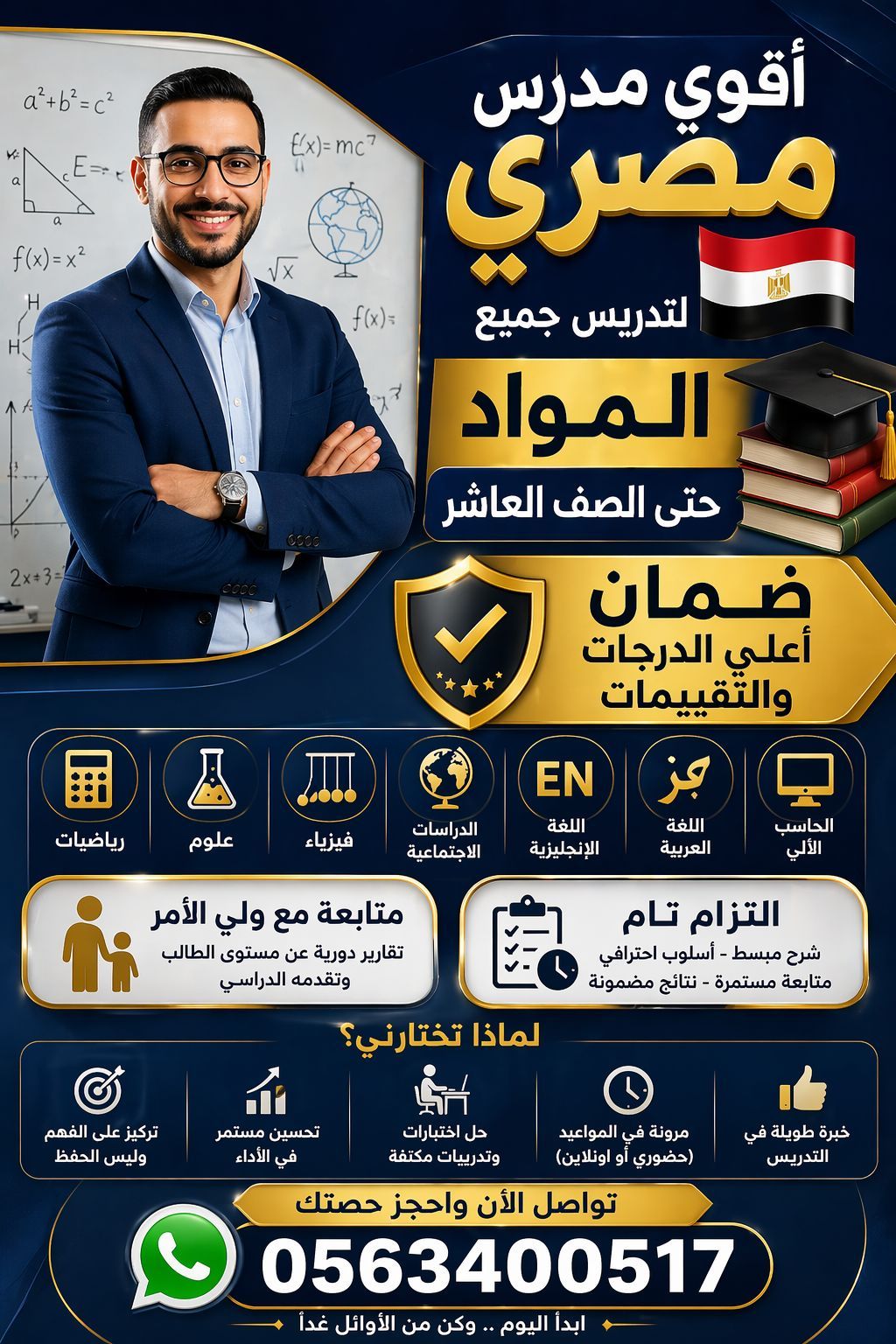 مدرس مصري خبرة كبيرة في مجال التدريس جميع المواد حتى الصف العاشر. بادر بالتواصل للحصول علي أعلى العلامات والتقييمات