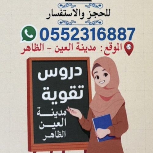 طريق طفلك نحو التفوق تأسيس ومتابعة دراسية - منطقة الظاهر 0552316887 خدماتي التعليمية تأسيس لغة عربية، انجليزية، وحساب من الصفر. متابعة يومية للواجبات والامتحانات. أساليب تعليمية حديثة ومبسطة. زيارات منزلية أو استقبال في منزلي. خصم مميز للأخوة