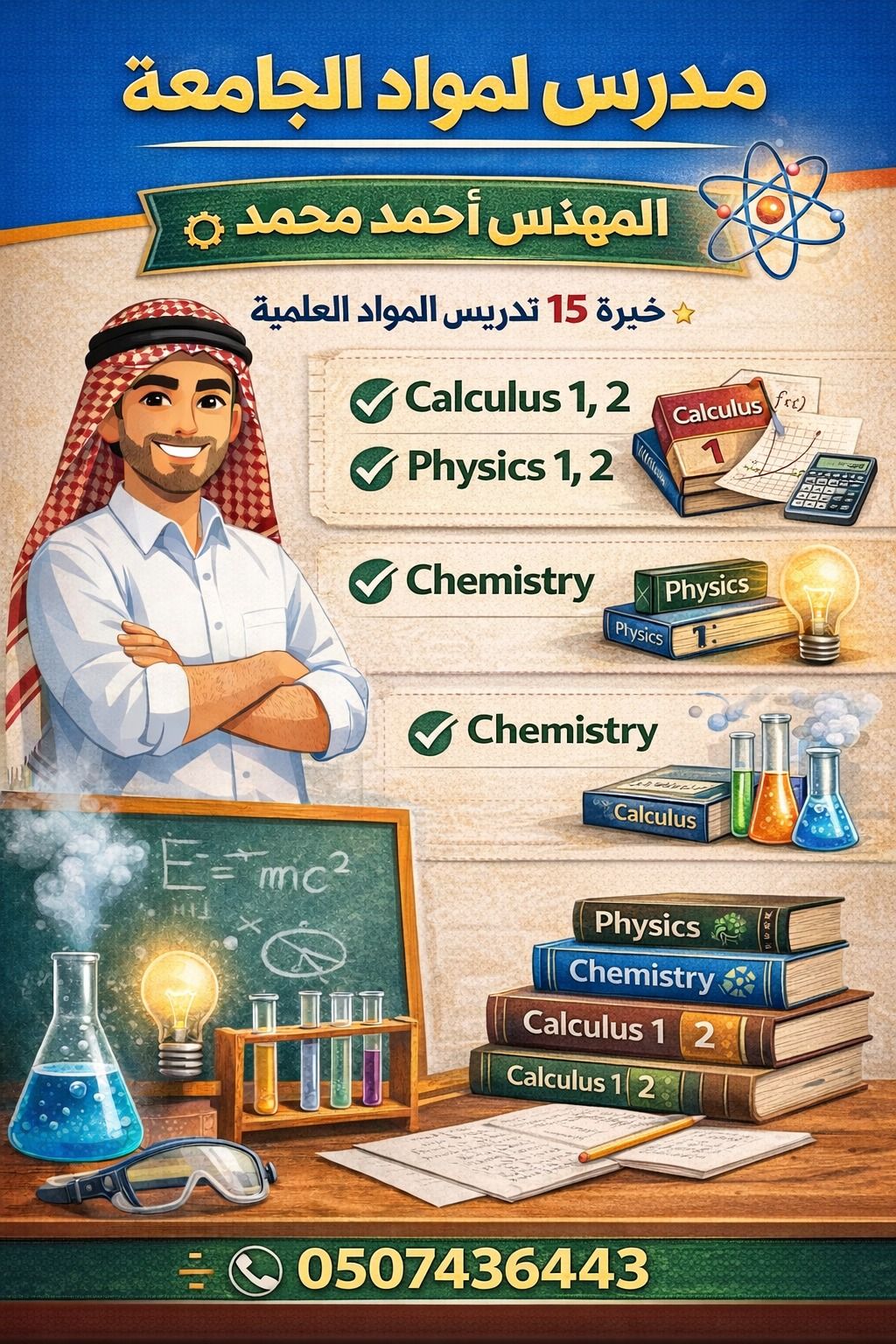 مهندس أحمد محمد - أردني الجنسية - خريج الجامعة الأردنية بتقدير امتياز تدريس المواد الجامعية باحترافية خبرة أكثر من 10 سنوات في تدريس المواد الجامعية مساعدة الطلاب على تحقيق درجات مرتفعة بفضل الله شرح مبسط، متابعة مستمرة، وتركيز على الفهم والتطبيق مناسب لطلاب الجامعات والمعاهد داخل مدينة العين تدريس حضوري خارج العين تدريس عن بعد (اونلاين) للتواصل والاستفسار