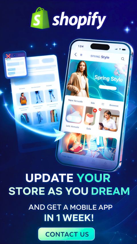 Create or redesign your Shopify store with a modern glass design + a mobile app delivered within one week. Renew your Shopify store and get a mobile app within 7 days