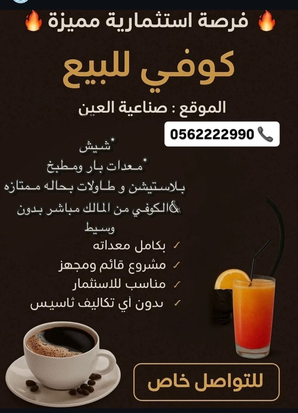 مقهى للبيع قائم وعليه زبائن بكامل تجهيزاته وجبات سريعة بالأي استيشن طاولة بلياردو، موقع مميز على الشارع الرئيسي صناعية العين التواصل مع المالك مباشرة البيع لعدم التفرغ