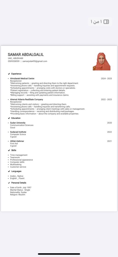 I am Samar, Sudanese, looking for a job in the field of sales. I have extensive experience in dealing with customers, as I have worked in more than one store. If there is any job that suits me, please contact me