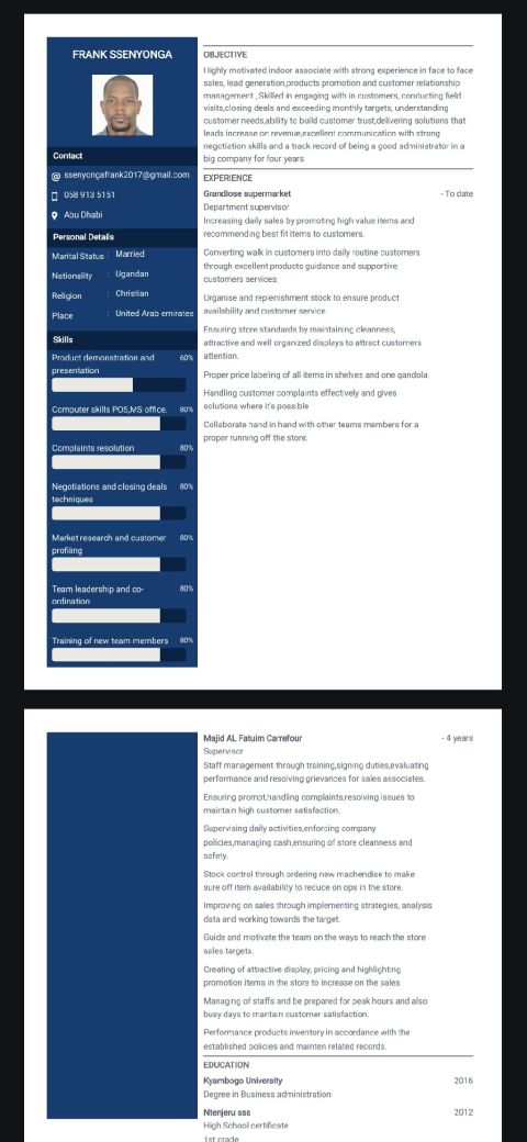 I am Nakibuuka Betty Ugandan 25 years of age fluent in English currently in UAE looking for a job as a cashier or sales person lively and willing to learn where necessary