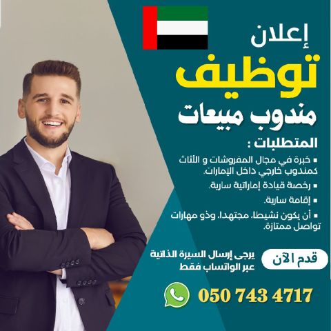 We are looking for a competent and experienced sales representative to join our team. In Al Ain, Al Yahar North. Requirements At least 5 years of experience in the furniture field within the UAE. Possess a valid UAE driving license. Be energetic, hardworking, and have excellent communication skills. For those interested, please send your CV via WhatsApp only to the