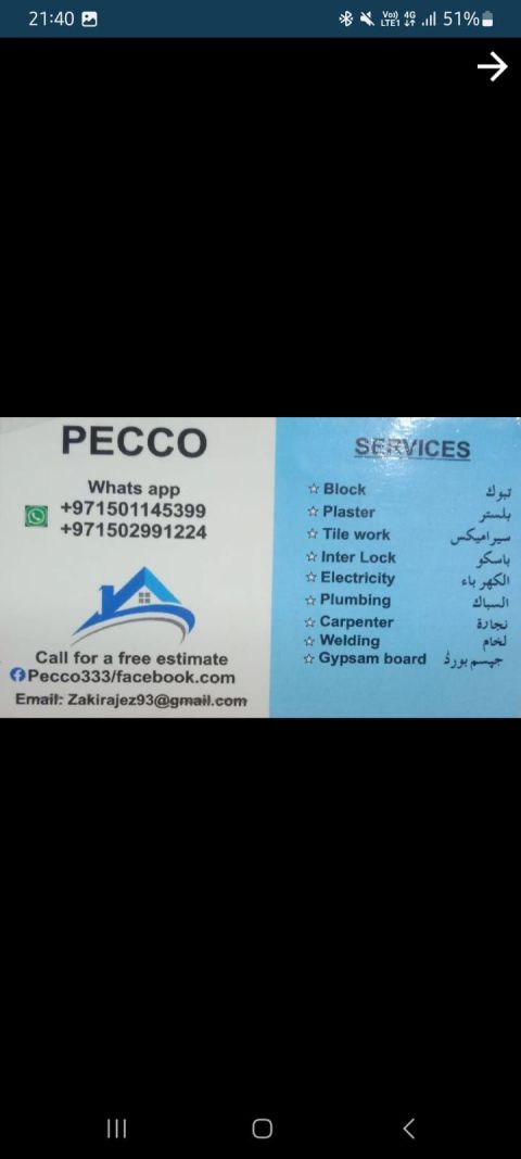Service to work maintenance for tiles interlock electricity plumbing carpenter welding gypsum board block plaster cleaning
