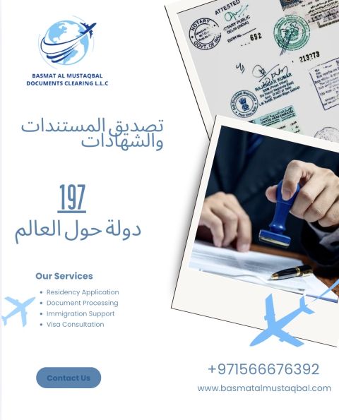 We offer a range of services including company formation, transaction follow - up, business services, all types of residency permits, document authentication from various embassies and ministries worldwide, certificate amendments, Dataflow services, and notary public services