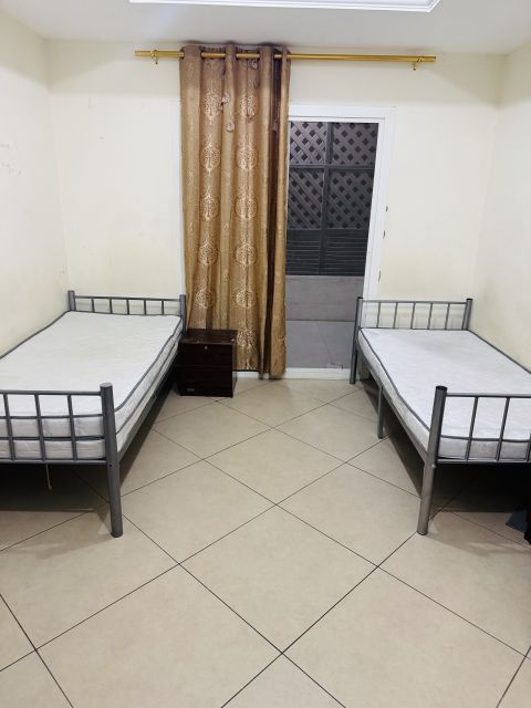 متوفر سكن لشاب عربي خلف حديقة البصرة في المويجعي سكن واسع ونظيف غرفتين وصالة مشتركة وحمامين على شخص 600 درهم شامل