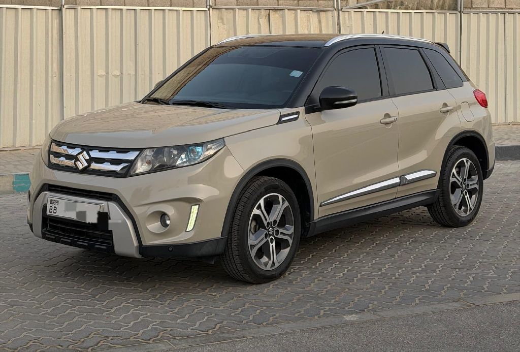 For sale: Suzuki Vitara 2017 model, mileage 86,000 km, beige exterior with black interior. Specifications: 4-cylinder, panoramic sunroof, GCC specifications, agency paint. Price: 31,000 negotiable.