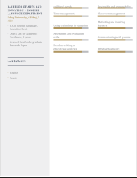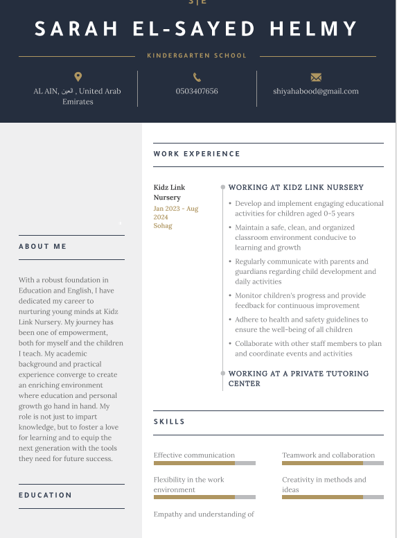 ساره السيد حلمي مقيمة في العين علي دراية تامة بالنشطه لمرحلة الطفولة المبكر وعملت في ألتدرسي فترة دراستي في مصر ومقدم لكم السيرة الذاتية