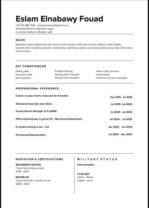 شاب مصري ابحث عن عمل عندي خبرة في المبيعات والكاشير ابحث عن أي فرصة عمل