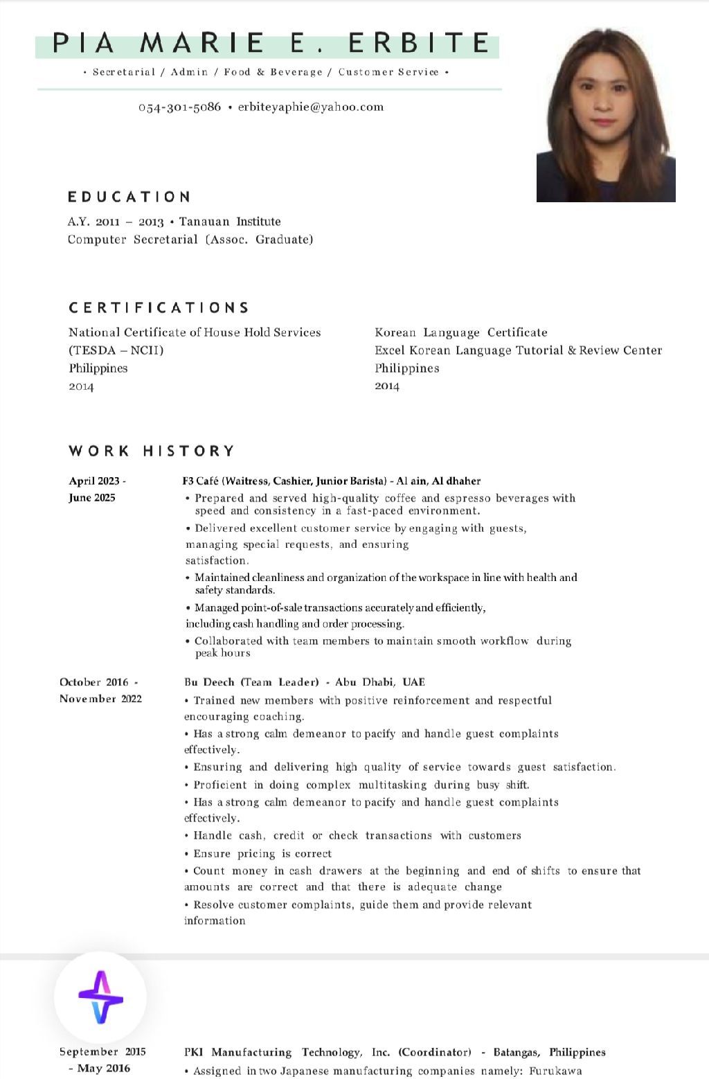 Im girl Looking for work in cafes or restaurants preparing fast food and drinks. See CV
