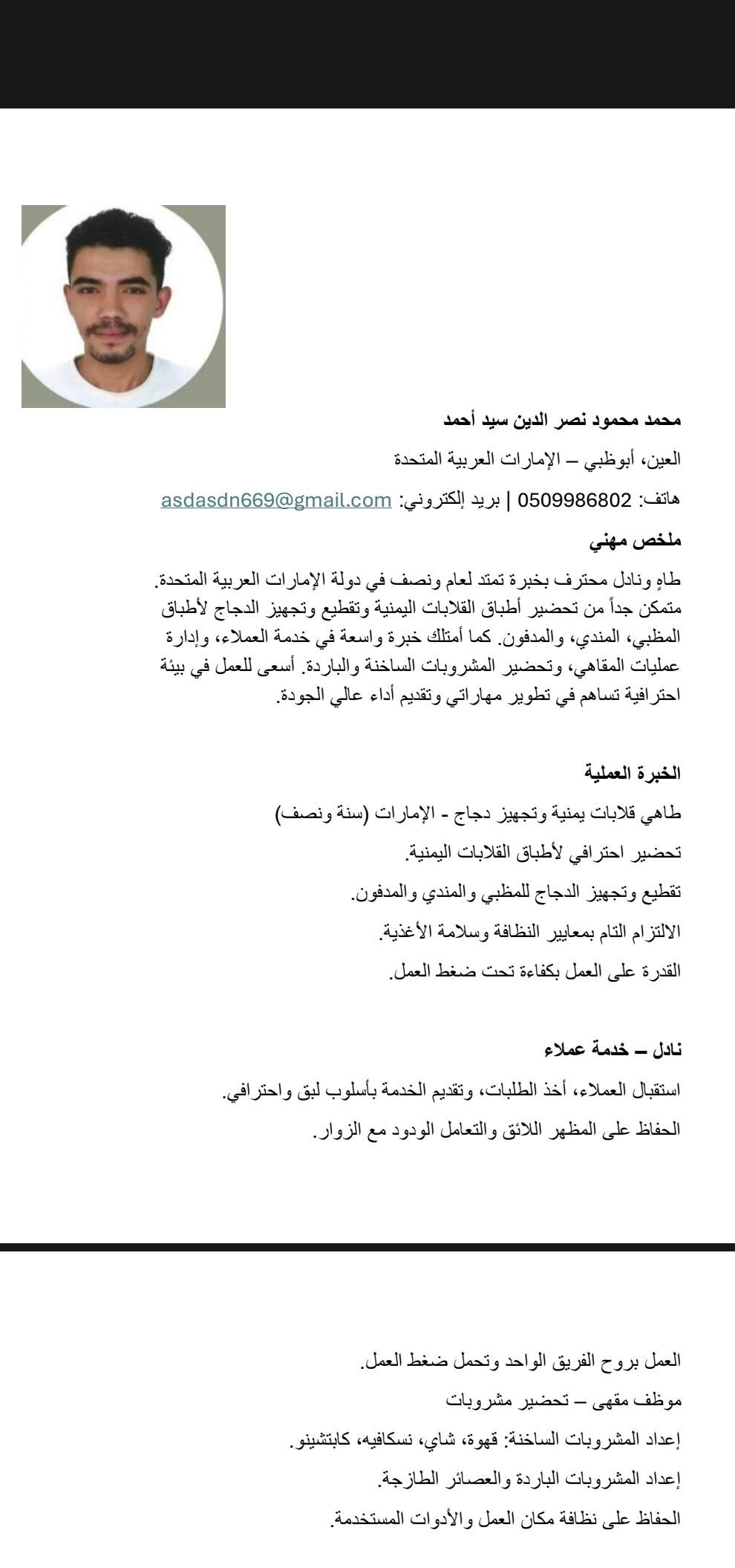 I am looking for a job in a Yemeni restaurant. I have been working for a year and a half in Al Ain, UAE, as a Yemeni pastry chef