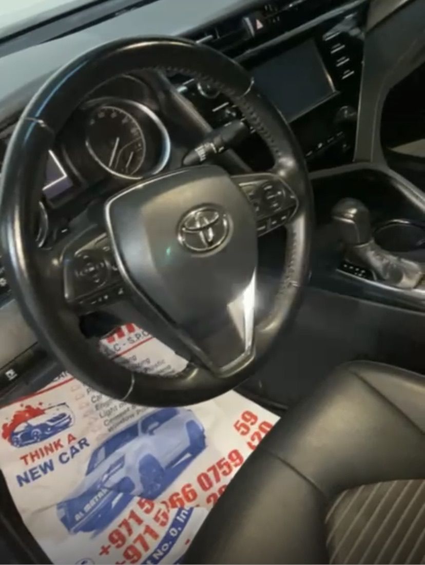 كامري 2019 4 سلندر، فل أوامر، رادار، مثبت سرعة، نظام تحذير الخروج عن المسار، فتحة سقف، مقاعد جلدية، داخلي أسود، كاربلاي، شاشة، إطارات جديدة، ملكية جديدة، ممشى حوالي 130,000 كيلومتر، مالك أول، بحالة الوكالة، المطلوب 46,000 درهم.