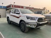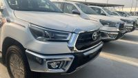 Hilux Double Cab Pickup Petrol Automatic Model 2025 Specifications: 2700cc petrol engine, 4-cylinder, automatic transmission, 4WD, chrome mirrors and handles, remote control, power windows, rear camera, fabric seats, steering wheel controls, cruise control, information screen, air conditioning with rear AC, 2 airbags, 5 seat belts, tire pressure sensors, fingerprint sensor, air compressor.
