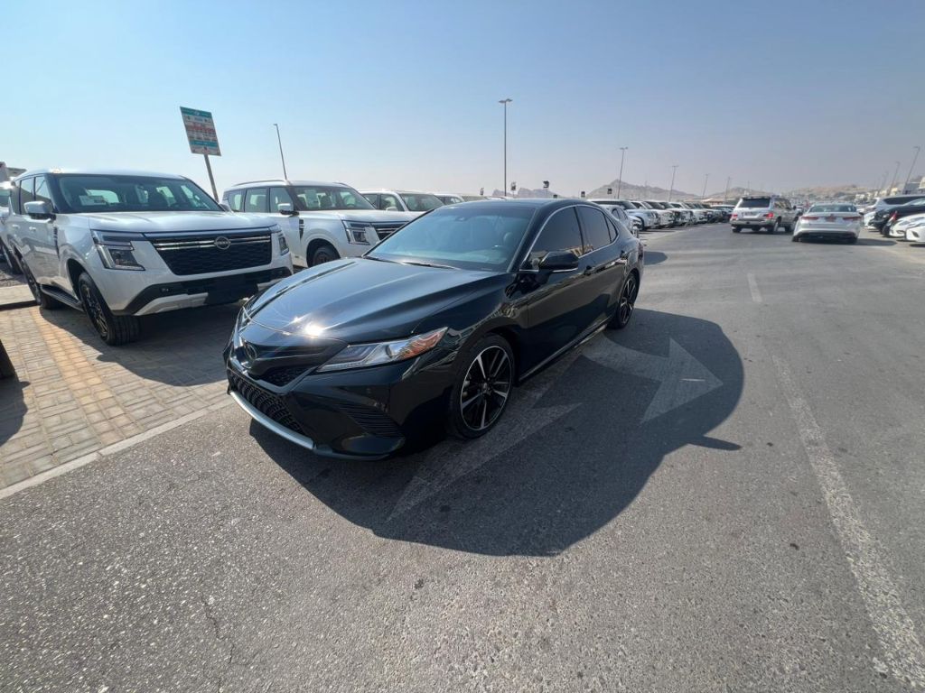 Price: 60,000 AED (negotiable). Toyota Camry SE model 2018, American import. 2.5L economical engine, automatic transmission, SE sport trim, LED lighting, 18-inch wheels, keyless entry, 10 airbags, ABS, VSC, TRAC, and EBD systems, rear camera, information screen, sport fabric seats, leather steering wheel, economical and comfortable car (installments possible through bank).