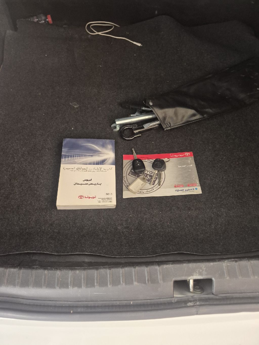 Toyota Yaris 2015, 185,000 km. All services completed, no repairs needed. Only requires registration and license plates. Price: 19,000 AED. The car is ready, only needs registration, inspected and passed.