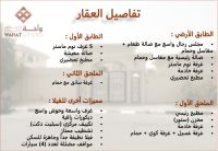 الطابق الأرضي مجلس رجال واسع مع صالة طعام + مغاسل وحمام - صالة رئيسية مع مغاسل وحمام - غرفة نوم ماستر - غرفة خادمة الطابق الأول 5 غرف نوم ماستر - صالة معيشة - مطبخ تحضيري الملحق الأول مطبخ رئيسي - مخزن (ستور) غرفة خادمة - غرفة غسيل + غرفة كوي + حمام الملحق الثاني غرفة سائق مع حمام مميزات أخرى للفيلا غرف واسعة وحوش واسع - ديكورات راقية - تكييف مركزي (سبليت دكت) تشطيب ممتاز