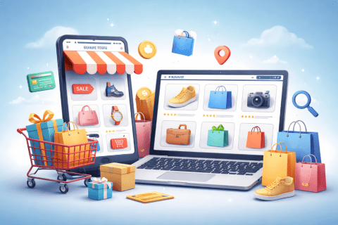 أنشئ متجرك الالكتروني وابدأ بيع منتجاتك عبر الانترنت أنشئ متجرك وأعرض سلعتك وابدأ البيع عبر الانترنت بسهولة. نقدم خدمة تصميم متجر الكتروني احترافي يساعدك على عرض منتجاتك والوصول الى العملاء بشكل أسرع. مميزات الخدمة تصميم متجر الكتروني احترافي اضافة المنتجات وتنظيم الأقسام ربط وسائل الدفع الالكتروني استقبال الطلبات عبر الموقع تصميم متوافق مع الهاتف والكمبيوتر لوحة تحكم سهلة لإدارة المنتجات