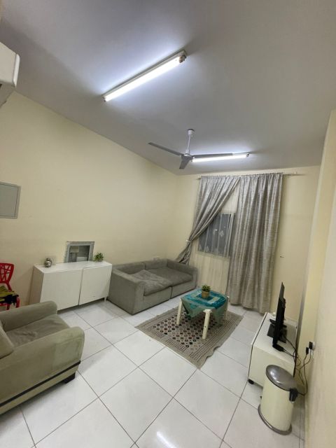 A one - bedroom apartment with a living room is available for rent in the Al Alia