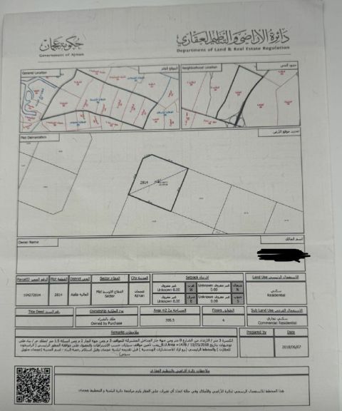 Commercial residential land for sale in - Ajman Location/ Al Alia Area/ 2755 SqFt Price 1200000 Land Permit/ G 3 Free Hold all Nationalities