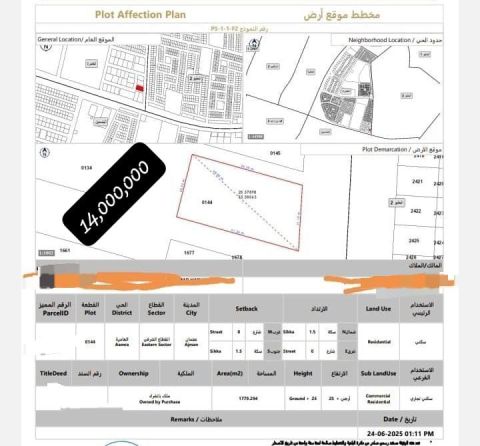 أرض في عجمان حي العامرة (بالقرب من ماكدونالدز) الطريق الرئيسي الاستخدام سكني تجاري رقم القطعة 0144 المساحة 19150 قدم مربع التصريح أرضي + 6 طوابق مواقف + أرضي + 25 طابق سكني اجمالي مساحة البناء (BUA) 430000 قدم مربع (مساحة قابلة للبيع) الحالة دراسة جدوى البرج جاهزة (تتسع ل 300 شقة) السعر 14000000 درهم